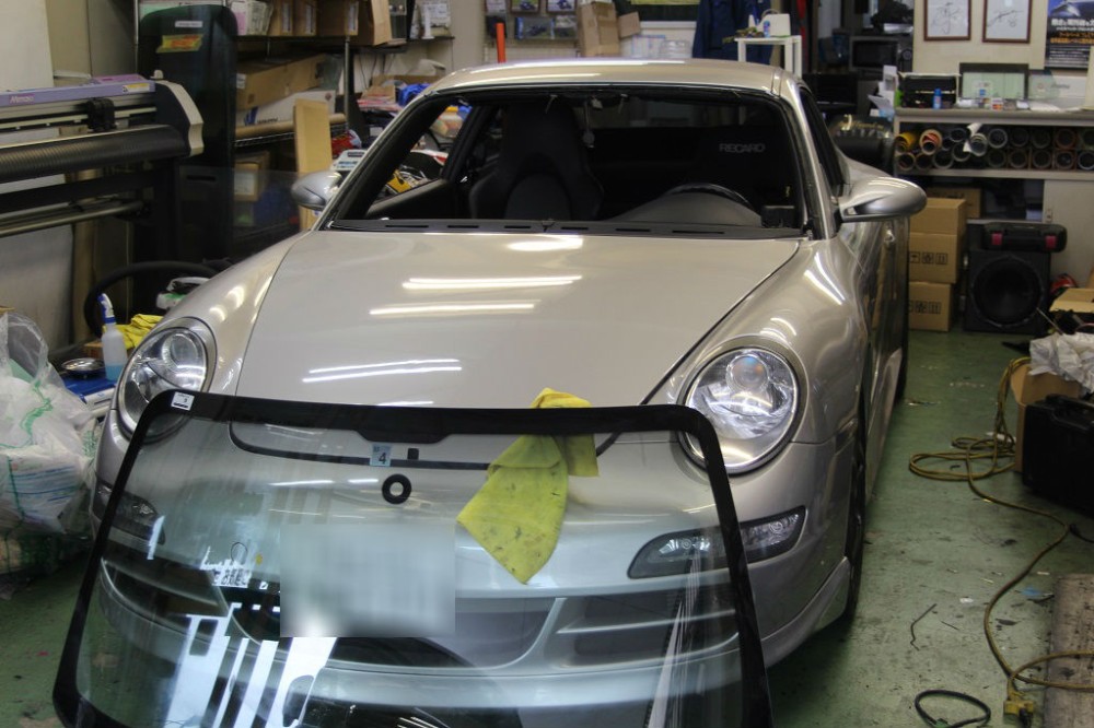 【ポルシェ】ひび割れに伴うフロントガラスの交換|神奈川県横浜市のお客様|横浜市にお住いのお客様