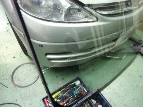 【トヨタ・エスティマ】飛び石によりひび割れたフロントガラスの交換|千葉県野田市のお客様の自動車ガラス修理|千葉県野田市にお住いのお客様