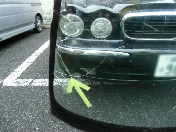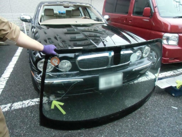 【ジャガー】飛び石によりひび割れたフロントガラスの交換|東京都練馬区のお客様の自動車ガラス修理|東京都練馬区のお客様