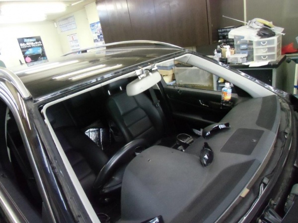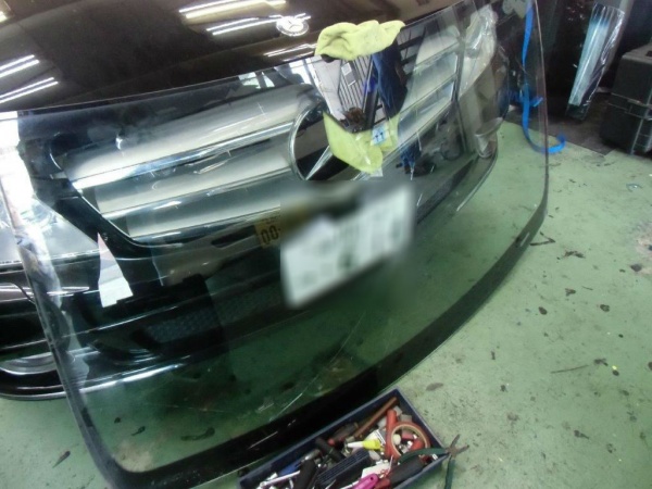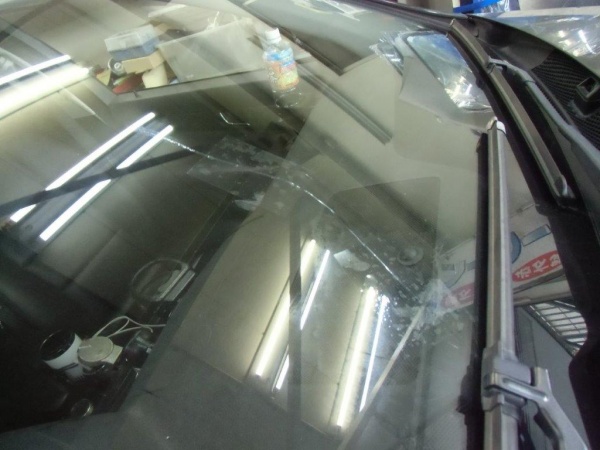 【ベンツ】飛び石によりひび割れたフロントガラスの交換|東京都品川区のお客様の自動車ガラス修理|東京都品川区のお客様
