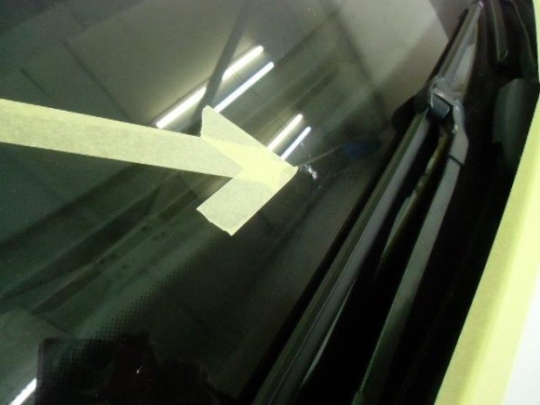 【ベンツ・Sクラス】追い越し車両から発生した飛び石によりひび割れたフロントガラス交換|東京都品川区のお客様の自動車ガラス修理|東京都品川区のお客様