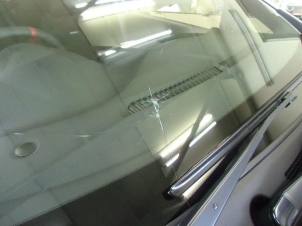 【日産:ノート】高速道路走行中の飛び石によりヒビの入ったフロントガラスの交換|東京都大田区のお客様の自動車ガラス修理|東京都大田区のお客様