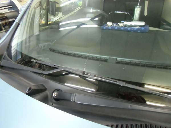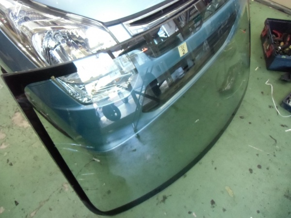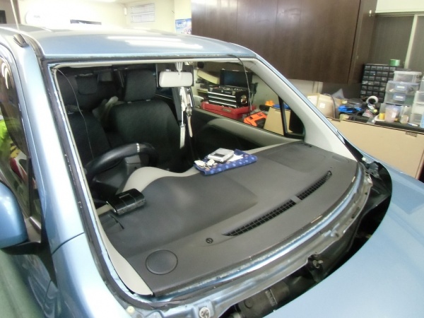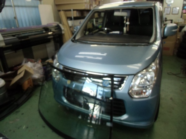 【ワゴンR】一般道走行中の飛び石によりひび割れたフロントガラスの交換|東京都品川区のお客様の自動車ガラス修理|東京都品川区にお住いのお客様