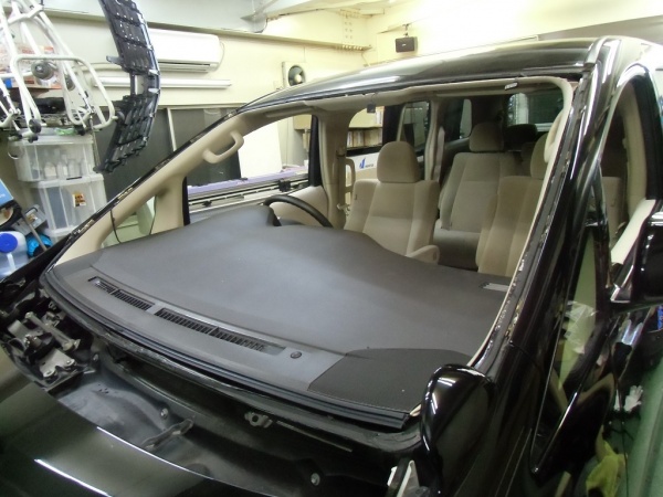 【アルファード】走行中の飛び石によるひび割れのフロントガラス交換|東京都品川区のお客様の自動車ガラス修理|東京都品川区のお客様